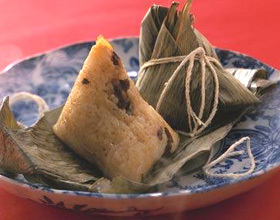 最大差別:溫水泡好棗,然后去籽剪成豆大顆粒,再與濾干的糯米混勻,至于調(diào)料方面,喜歡甜的可放些糖。 綠豆鴨蛋粽做法 糯米、綠豆各750克,花生米25克,熟咸鴨蛋黃5個(gè)。將蛋黃切碎與糯米、綠豆、花生拌勻成餡。取泡過的粽殼葉折成斗狀,填入適量餡料,包好后入鍋加冷水浸沒粽子,煮沸1小時(shí)后,改文火煮1小時(shí)即可。 皮牛肉粽做法 泡過的糯米、綠豆各1000克,牛肉、陳皮各100克,豬肉末50克,蔥末、姜末、食鹽適量。用豬油將蔥末炒黃,依次放入牛肉、陳皮、豬肉末炒半分鐘后,淋上麻油即成餡。包時(shí)先填進(jìn)拌勻的糯米、綠豆,將餡料夾在中間,再按上述方式煮熟。 百果粽子做法 糯米750克、青梅、菠蘿肉、冬瓜條各25克,西瓜子仁、核桃仁、葡萄干、紅絲各15克,白砂糖300克。先將青梅、菠蘿肉、冬瓜條各用白糖水煮,瀝干水分,然后用白糖腌漬24小時(shí),即成餡。包成五角方底粽,煮50分鐘,離火燜4分鐘即成。 咸香雞肉粽 材料:糯米600克、雞肉800克、薯仔400克、蝦米80克、蒜蓉1湯匙、生抽半湯匙、蔥、鹽、雞精、生粉若干、粽葉適量、粽繩適量。 做法: 1、將雞肉、薯仔和大蔥頭剁碎,加入鹽、蒜、雞精、生粉等調(diào)料拌勻。 2、洗凈糯米,浸水半小時(shí)。燒熱鍋,用蔥姜蒜爆香,加入糯米和生抽,炒均。 3、用粽葉2張,折疊成漏狀,放入炒香的糯米1湯匙,加入做法1中扮勻的餡料,再加入1湯匙的糯米在上面。 4、將粽繩把粽子扎好,放入高壓煲中煮30分鐘,即可趁熱食。如果是普通煲須煮2小時(shí)左右。 裹蒸粽做法 材料: 1、糯米500克、干香菇1朵、蓮子4粒、蝦米10克、綠豆仁50克、栗子2粒、干荷葉1張、干竹葉6片、干堿草2條。 2、咸蛋黃1粒、胡椒粉少許、芋頭30克、排骨、肥肉約100克;五香粉、蔥油、味精鹽少許。 做法: 1、將用料1中的材料泡水至發(fā)起為止,其中尖糯米至少泡2個(gè)半小時(shí)以上,然后用胡椒粉、蔥油、味精、鹽來腌味。芋頭切塊炸過,備用。 2、將肥肉切塊用五香粉腌味約30分鐘。排骨切塊用黑醋、醬油、鹽、味精、面粉腌過備用。 3、將荷葉對(duì)撕,粗面朝下,鋪上3片竹葉,放一半的糯米。然后放入香菇、蓮子、蝦米、栗子、咸蛋黃、肥肉、排骨、芋頭、綠豆仁。再放上另一半糯米,將另外3片竹葉蓋上。 4、將荷葉左右兩側(cè)對(duì)摺抓緊,再前后對(duì)摺抓緊包成四角形,用堿草包緊打結(jié)即可。 5、用水煮粽子四小時(shí)即可上桌。